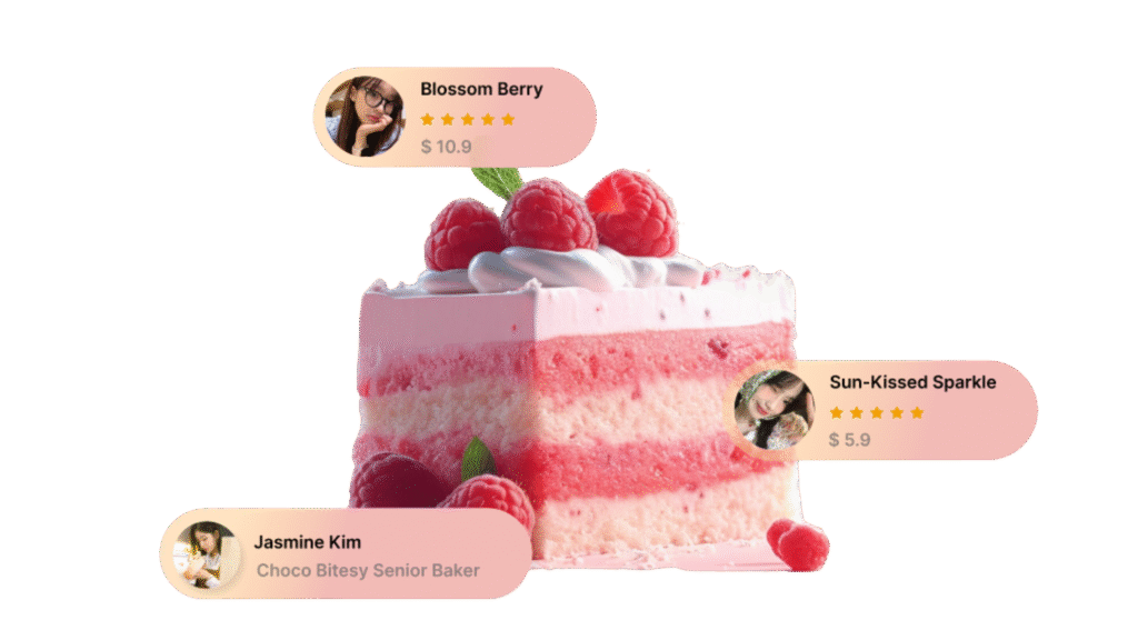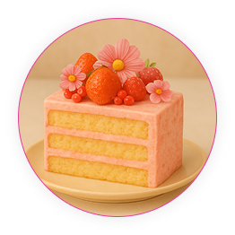 A floral-kissed berry cake for your sunlit moments. Layers of soft vanilla sponge infused with berry cream, topped with summer blooms and real berries.